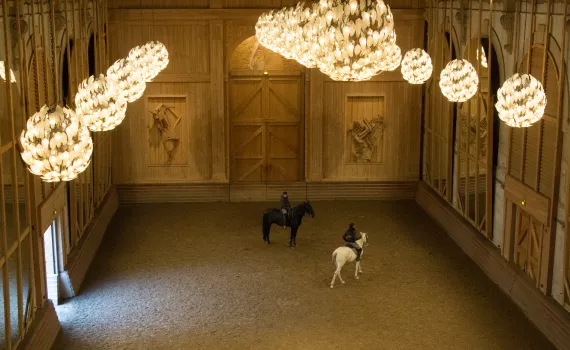 Dans la Grande Écurie de Versailles, découvrez le spectacle « La Voix de l’écuyère » de l’Académie équestre nationale, corps de ballet unique au monde qui associe le travail de haute école avec d’autres disciplines telles que l’escrime, le chant ou le Kyodo.