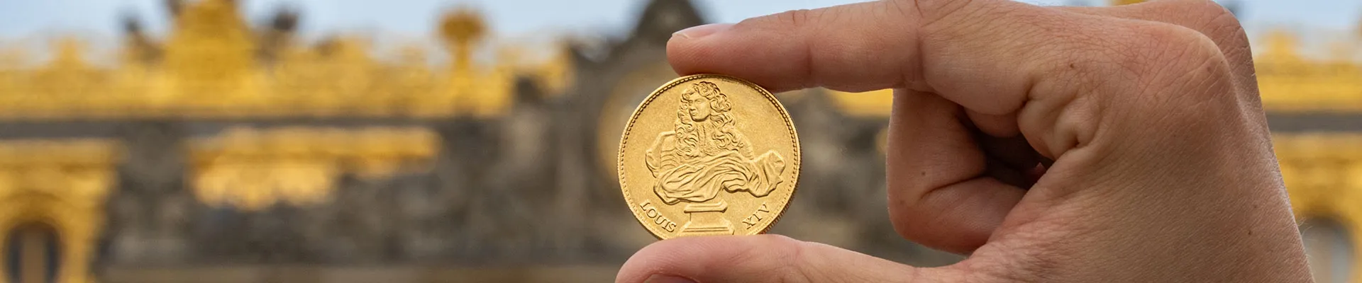 En donnant 8 € en plus de votre billet, contribuez au rayonnement et aux restaurations patrimoniales du château de Versailles. Pour cette occasion, vous recevrez en remerciement un jeton, en édition limitée créée par la Maison Arthus-Bertrand, illustrant le buste de Louis XIV sculpté par Le Bernin.