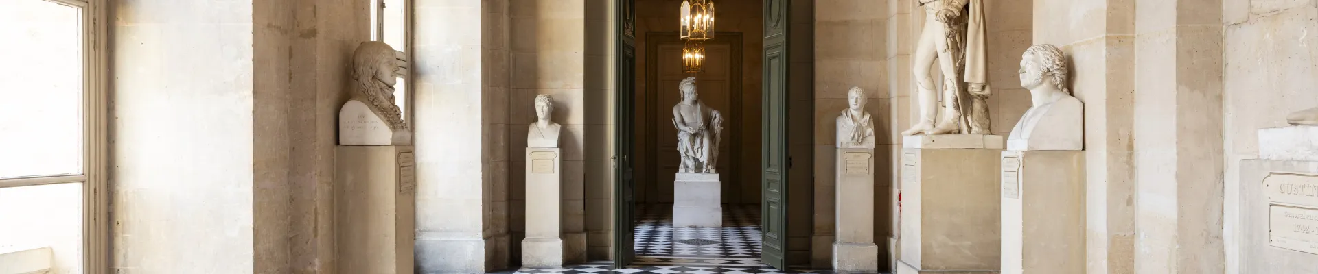 Les bustes et statues de la galerie de pierre basse de l’aile du Midi représentent des généraux, aides de camp et dignitaires de la Révolution et du premier Empire. Imaginée par Louis-Philippe lors de la création des Galeries Historiques, cette galerie a pour ambition de mettre en avant les gloires militaires et personnalités politiques de cette période. Participez à la renaissance de la vision de Louis-Philippe : devenez mécène et soutenez la restauration de ces trésors en adoptant un buste ou une statue.