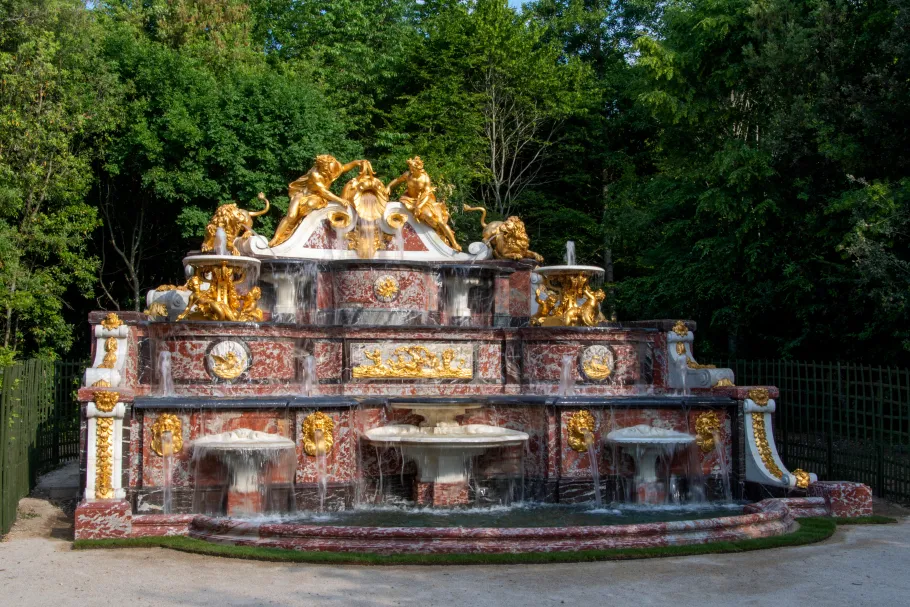 Construit en 1702 sur les plans de Jules Hardouin-Mansart et les directives de Louis XIV, le Buffet d’Eau est une composition magistrale qui n’a pas son pareil dans tous les jardins et bosquets de Versailles. Récemment restaurée, la fontaine du Buffet d'eau retrouve aujourd'hui toute sa magnificence et offre à nouveau ces jeux d'eau aux visiteurs.