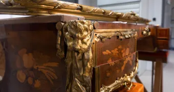 La restauration des boiseries du cabinet d'angle du roi, réalisée en 2019 grâce au mécénat de Rolex France, a été l'occasion de rendre son éclat d'origine à un meuble emblématique du Château: le bureau du roi Louis XV.