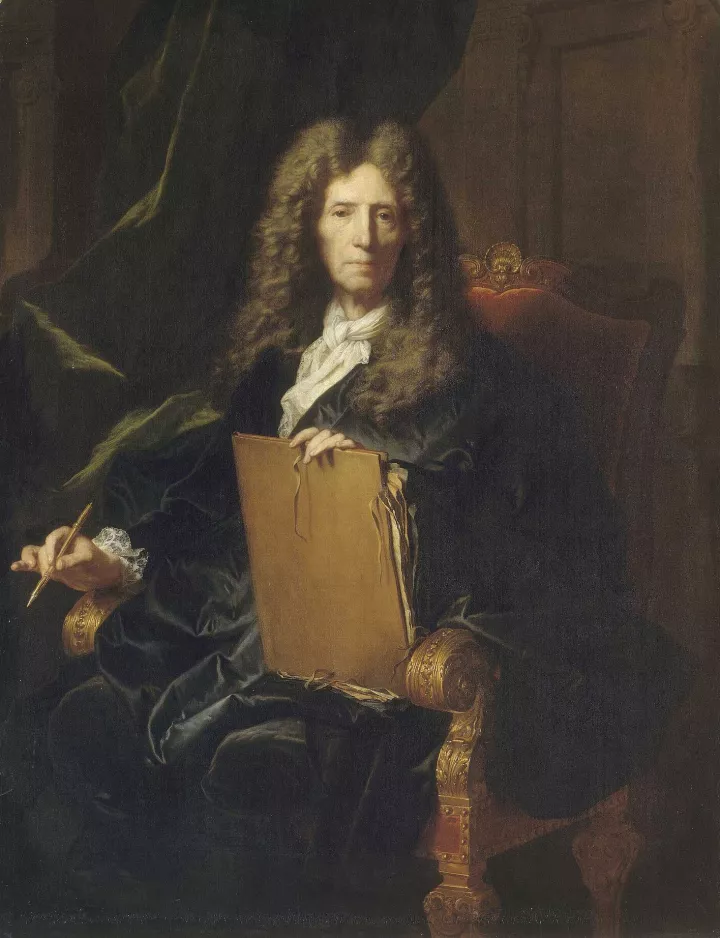 Natif de Perpignan, Hyacinthe Rigaud se forme dans le sud de la France avant de s'installer à Paris en 1681. Sur les conseils de Charles Le Brun, il décide de se consacrer au genre du portrait qu'il élève à sa plus haute expression. Il se fait connaitre du roi et de la Cour grâce à la protection du duc d'Orléans dont il fait le portrait en 1688. Puis en 1700, il est reçu comme peintre d'histoire à l'Académie royale de peinture et de sculpture, mais c'est en 1701 qu'il devient le plus célèbre des portraitistes de son temps. Cette année-là, Louis XIV lui commande un portrait en costume de sacre qui devient un véritable emblème de la monarchie absolue française. Ainsi, il fige les codes du portrait d'apparat : colonne et paysage en arrière-plan, draperie chatoyante, pose solennelle et couleurs intenses. Souverains et souveraines européens se feront portraiturer de cette manière jusqu'au XIXe siècle. Il portraiture également ses collègues artistes tels Charles de La Fosse ou François Girardon, des hommes d'Église, des magisrats et des financiers. Sa clientèle bien choisie lui permet de se constituer une collection remarquable de livres et d'œuvres d'art dans son hôtel particulier de la rue Louis-Le-Grand, où il s'éteint le 29 décembre 1743.