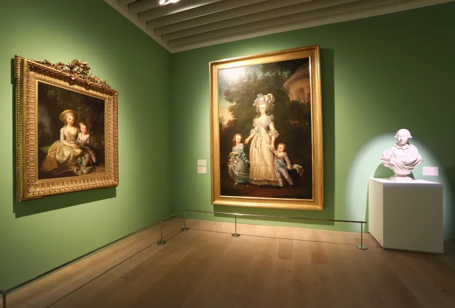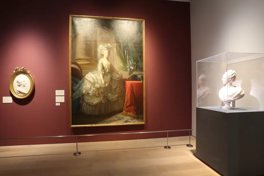Des portraits de la reine et des membres de la famille royale par les plus grands portraitistes de la Cour (notamment François-Hubert Drouais, Louis Michel Van Loo et Joseph Siffred Duplessis) permettront de se familiariser avec l’entourage de Marie-Antoinette en France : le roi Louis XV, son mari Louis XVI, ses beaux-frères, les comtes de Provence et d’Artois, mais aussi l’artiste Élisabeth Louise Vigée Lebrun qui sut gagner sa confiance. Elle laissa les plus beaux portraits de Marie-Antoinette, portraits officiels ou portraits plus intimes.