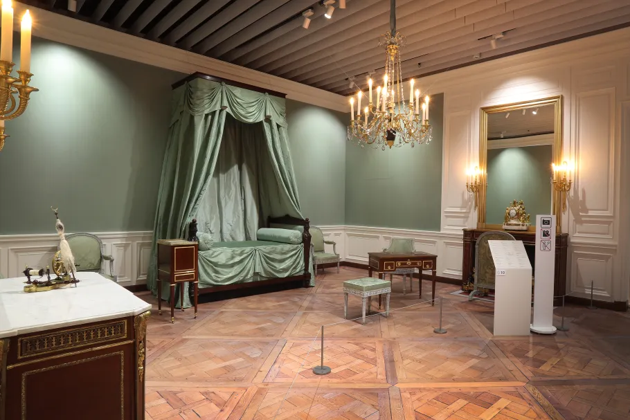 L’aspect le plus original et le plus spectaculaire de l’exposition est la reconstitution de l’appartement privé de la Reine, aménagé à partir de 1782 au rez-de-chaussée de la cour de marbre du château de Versailles. La chambre et la pièce des bains sont aménagées avec une grande partie de leur mobilier alors que la bibliothèque de stuc, aujourd’hui disparue, est reconstituée en 3D.