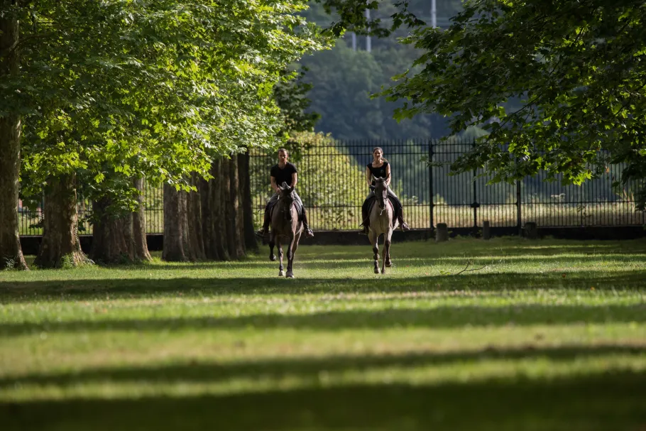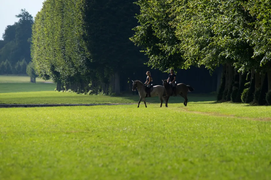 Les cavaliers peuvent profiter aux trois allures des allées du Parc du domaine de Versailles, et au pas dans le domaine de Marly.