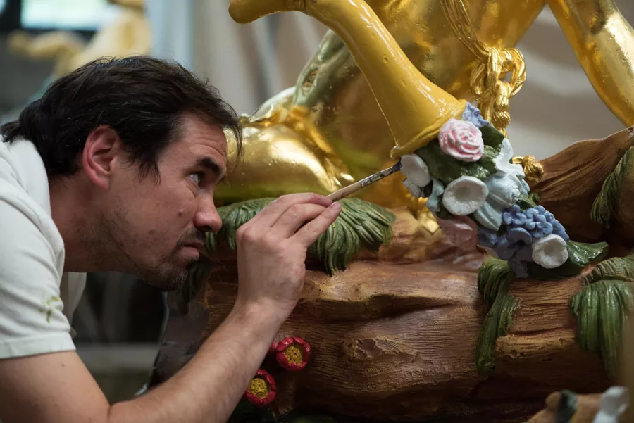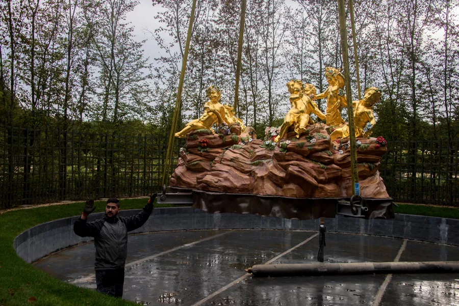 Ce chantier de restauration a fait appel aux compétences spécifiques de différents métiers d’art (doreurs, fontainiers, restaurateurs de métal, maçons, jardiniers), qui sont intervenues sous la conduite de l’architecte en chef des monuments historiques, Pierre-André Lablaude, et de la direction du patrimoine et des jardins du château de Versailles. Cette opération participe ainsi à la volonté du château de Versailles de valoriser l’excellence de ces savoir-faire uniques et fragiles.