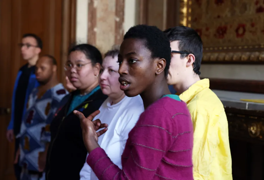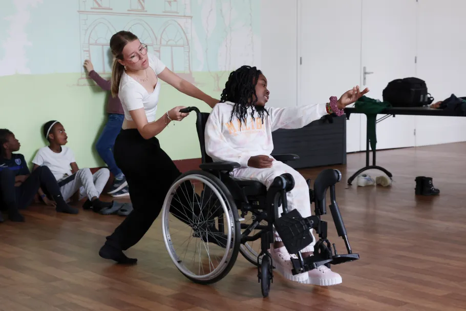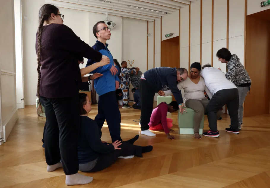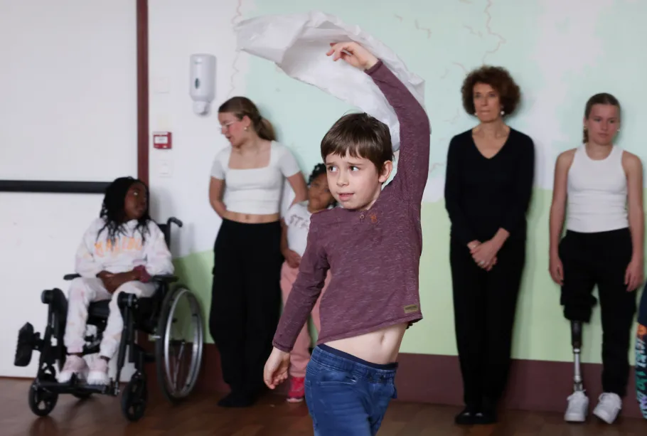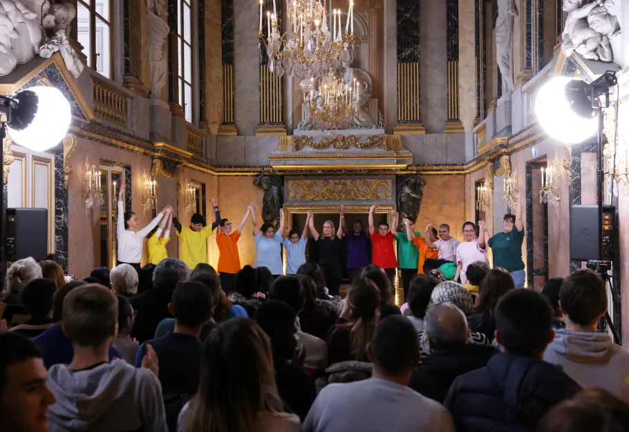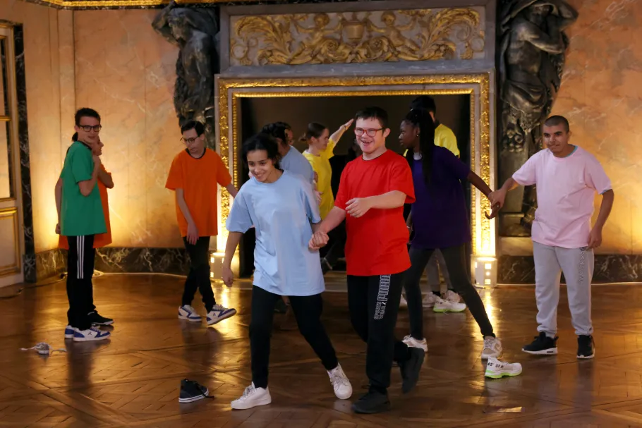 Douze jeunes de l’institut médicoéducatif (IME) La Rencontre de Trappes accompagnés du danse thérapeute Alvaro Morell ont fait vibrer le foyer haut de l’Opéra royal au rythme de leur création contemporaine le lundi 18 décembre 2023.