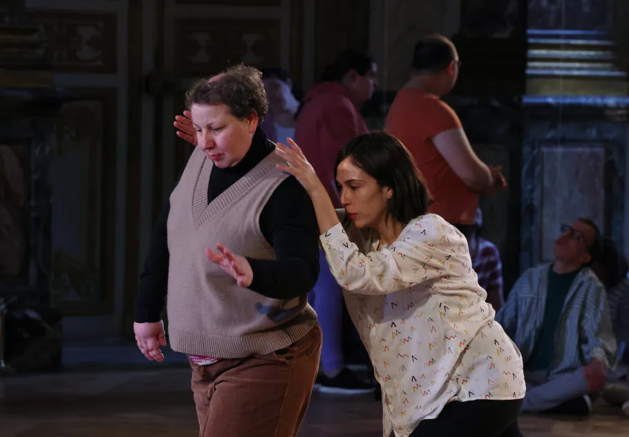Sept personnes de l’ESAT Avenir Apei et Guillaume Jablonka, chorégraphe de danse baroque, de la compagnie Divertimenty ont, quant à eux, investi la galerie basse du corps central.