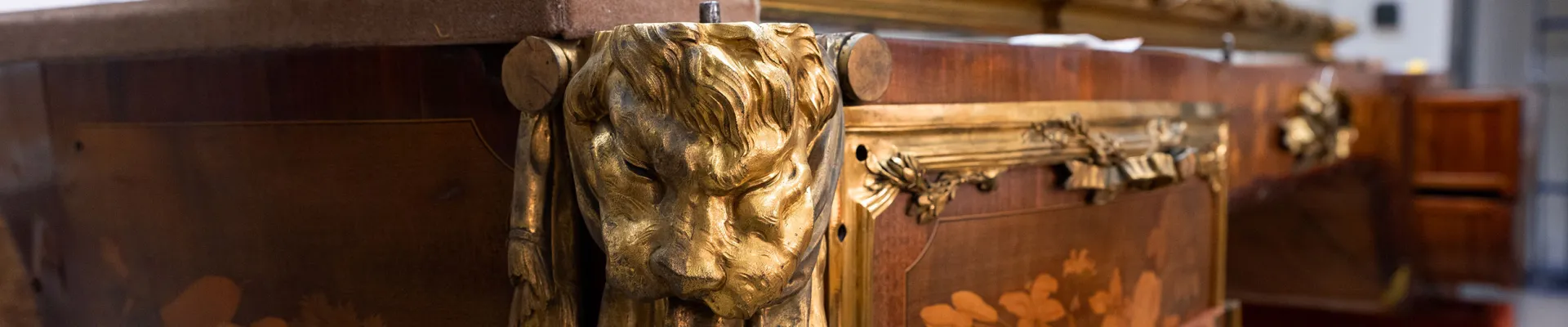 La restauration des boiseries du cabinet d'angle du roi, réalisée en 2019 grâce au mécénat de Rolex France, a été l'occasion de rendre son éclat d'origine à un meuble emblématique du Château : le bureau du roi Louis XV.