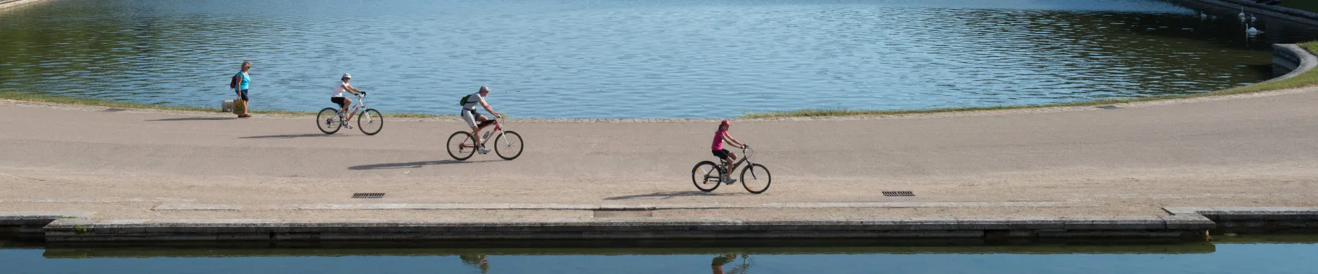 Les adeptes du vélo peuvent profiter des allées du parc du Château ou des bords du Grand Canal pour s'y promener, sur routes bitumées ou sur pistes de terre.