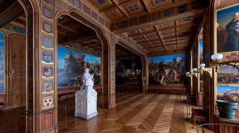 Découvrez l’atmosphère intime et le décor raffiné des pièces à vivre : la salle à manger, le cabinet de la Pendule et le salon de jeux.