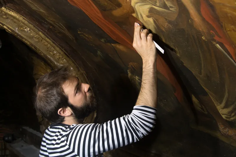 À gauche de la cheminée, on peut voir La Famille de Darius aux pieds d’Alexandre, par Charles Le Brun et à droite Les Pèlerins d’Emmaüs, d’après Véronèse : placés en pendant, selon la volonté du roi, ils révèlent la volonté de montrer que les peintres français pouvaient rivaliser avec les plus grands maîtres italiens. De part et d’autre de la cheminée, à l’emplacement où se trouvent aujourd’hui les tableaux, deux tribunes, supprimées en 1750, étaient destinées aux musiciens lorsque, les soirs d’appartement, le salon était réservé à la musique et à la danse.