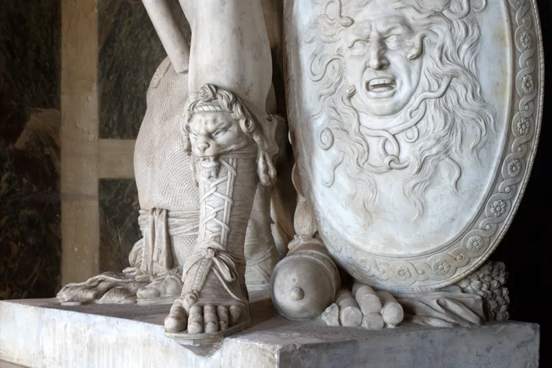 À la suite des deux salons précédents, conçus comme des vestibules, le salon de Mars marquait le début de l’appartement du roi proprement dit par sa fonction de salle des gardes. Sa consécration au dieu de la Guerre est donc tout à fait adéquate. Au centre du plafond, Claude Audran a peint Mars sur un char tiré par des loups. L’œuvre est encadrée par deux compositions ; l’une, à l’est, par Jouvenet : La Victoire soutenue par Hercule suivie de l’Abondance et de la Félicité ; l’autre, à l’ouest, par Houasse : La Terreur, la Fureur et l’Épouvante s’emparant des puissances de la terre. Les voussures, traitées en camaïeu d’or, célèbrent les triomphes guerriers des souverains de l’Antiquité auxquels répondent tout naturellement les hauts faits militaires du roi évoqués par les écoinçons de stuc doré des frères Marsy. Enfin, la corniche accentue la vocation militaire en étant ornée de casques et de coiffures guerrières variées.