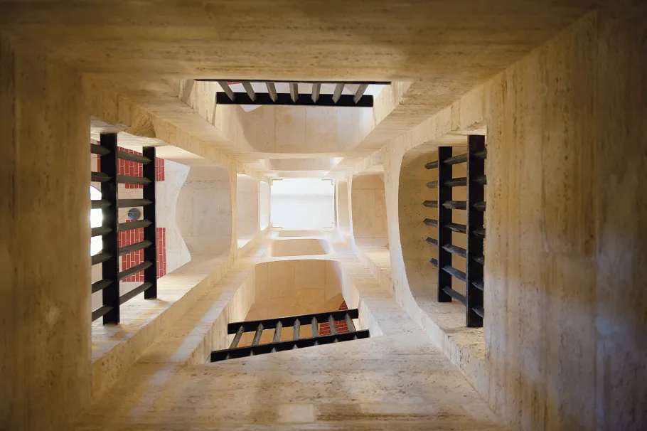 Les matériaux modernes, comme le métal et le verre, sont associés aux matériaux d’origine : sol en pierre et terre cuite, murs en pierre de taille. Tout l’enjeu de cette restauration a été de créer un espace de travail fonctionnel dans le respect de ce bâtiment, classé Monument historique depuis 1929.