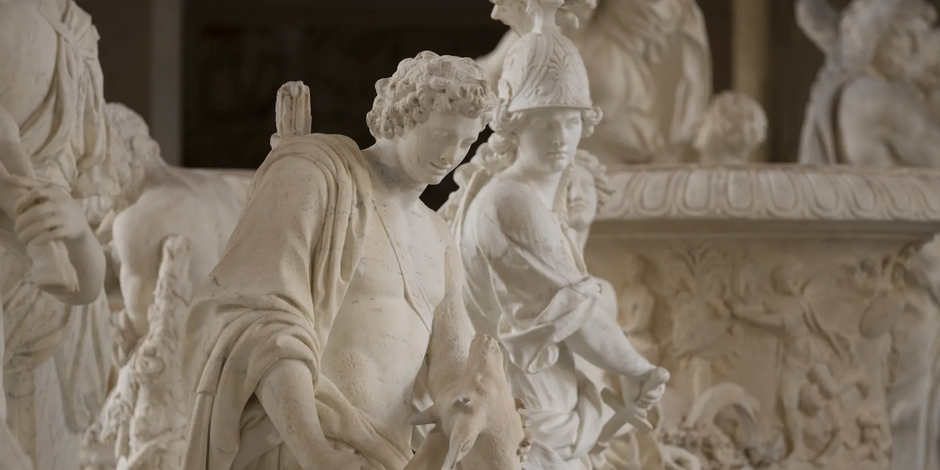 À ce magnifique ensemble, sont venus s’ajouter, dans le cadre de la campagne de sauvetage des chefs-d’œuvre sculptés des jardins de Louis XIV, des originaux en marbre provenant du Jardin de Versailles.