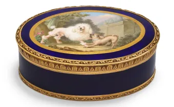 Le tableau acquis par le château de Versailles reprend de manière identique la composition conservée à Waddesdon Manor. Une variante dans le coloris du maroquin du bureau, vert d’une part et bleu de l’autre, peut toutefois être mentionnée. La pratique de la réplique autographe était à l’époque courante ; elle est attestée à plusieurs reprises chez Adélaïde Labille-Guiard, comme en témoignent les différentes versions des portraits de Mesdames