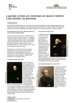 Qui ne connaît pas les portraits de ces célèbres figures, présents dans tous les manuels d’histoire ? Le château de Versailles, qui abrite le musée voulu par Louis-Philippe « dédié à toutes les gloires de la France », dont l’histoire se poursuit jusqu’au XXe siècle, conserve des portraits peints par Léon Bonnat. Quatre d’entre-eux sont actuellement prêtés aux musées de Bayonne à l’occasion d’une exposition consacrée à l’artiste.