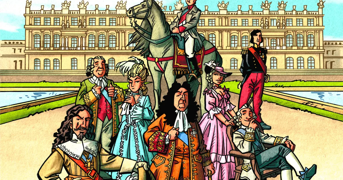 Au château de Versailles, les lecteurs découvrent le relais de chasse au temps de Louis XIII (la cour centrale du château), la construction du château par Louis XIV (les Jardins et la galerie des Glaces), les amours de Louis XV (les petits appartements), la vie à la cour sous le règne de Marie-Antoinette (le petit Trianon), le drame de Louis XVI, sa famille et les événements révolutionnaires, le pillage et les dégradations de la Révolution (les appartements de la Reine) et enfin la création par Louis-Philippe du musée ouvert à tous (la galerie des Batailles).
