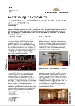 L'appartement du président de l'Assemblée nationale est l'un des endroits les plus méconnus du château de Versailles. Situés dans l'aile du Midi, ces salons ont été conçus, à l'instar de la salle du Congrès, par l'architecte Edmond de Joly en 1875. L'appartement se compose de deux pièces de réception aux décors de style Louis XVI et d'un appartement privé à l'étage. A l'occasion des Journées européennes du patrimoine, plusieurs bustes de présidents de la République et du Conseil de la IIIe République y seront exposés.