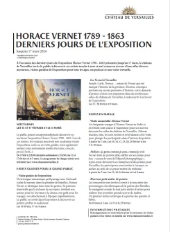 Le château de Versailles conserve aujourd’hui la plus grande collection d’oeuvres du peintre. Plus de quarante ans après la dernière exposition consacrée à Horace Vernet, cette rétrospective d’environ 200 oeuvres est l’occasion de découvrir de nombreux chefs-d’oeuvre inédits de l’artiste et de plonger dans son époque.