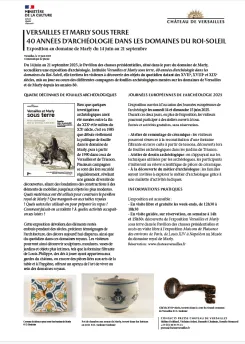 - En visite guidée, sur réservation, en semaine à 14h et 15h30 : découverte de l'exposition Versailles et Marly sous terre dans le Pavillon des chasses présidentielles et accès en visite libre à l’exposition Maisons de Plaisance