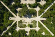 Ce salon de verdure s’est altéré progressivement au cours des XIXe et XXe siècles. Ses allées aux frondaisons généreuses avaient laissé place à des cheminements plus structurés et la diversité botanique avait disparu au profit de haies et bordures plus uniformes. Précédée d’une recherche documentaire détaillée, la restauration, initiée en 2019, a permis de retrouver précisément les anciennes dispositions.