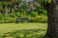 2.    « Sous les arbres » est une allée fleurie de cerisiers du Japon, composée de plusieurs îlots de terre contenant des plantes et arbustes odorants tels que des jasmins rustiques, des lilas ou encore des seringats,