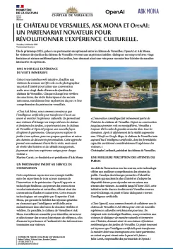 « Chez OpenAI, nous sommes honorés de collaborer avec le château de Versailles et Ask Mona pour créer de nouvelles expériences culturelles enrichissantes pour tous. En intégrant notre technologie Realtime, nous permettons aux visiteurs de dialoguer de manière naturelle et immersive avec l’histoire, donnant ainsi vie aux statues et fontaines emblématiques des jardins de Versailles. Ce projet innovant est la preuve que l’intelligence artificielle peut transformer la manière dont nous interagissons avec notre patrimoine, en créant un pont vivant entre le passé et le futur. »