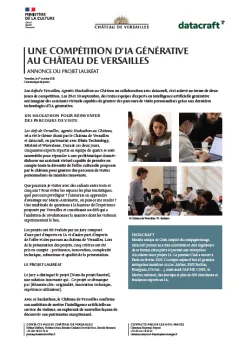 Les clefs de Versailles, Agentic Hackathon au Château, tel a été le thème choisi par le Château de Versailles et datacraft, en partenariat avec Illuin Technology, Mistral et Wavestone. Durant ces deux jours, cinquantes experts répartis en équipe de quatre se sont rassemblés pour répondre à une problématique donnée : élaborer un assistant virtuel capable de prendre en compte toute la diversité de l'offre culturelle proposée par le château pour générer des parcours de visites personnalisés de manière innovante.