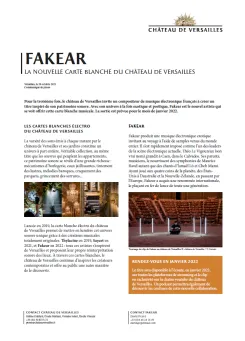Lancée en 2019, la carte blanche électro du château de Versailles permet de mettre en lumière cet univers sonore unique grâce à des créations musicales totalement originales. Thylacine en 2019, Saycet en 2021, et Fakear en 2022 : tous ces artistes s'inspirent de Versailles et proposent leur propre réinterprétation sonore des lieux. À travers ces cartes blanches, le château de Versailles continue d'inspirer les créateurs contemporains et offre au public une autre manière de le découvrir.