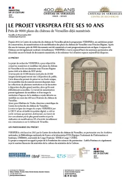 VERSPERA a été lancé en 2013 par le Centre de recherche du château de Versailles, en partenariat avec les Archives nationales, la Bibliothèque nationale de France et le laboratoire ETIS (Équipes Traitement de l’Information et Systèmes, UMR8051, université de Cergy-Pontoise / ENSEA Cergy / CNRS).