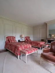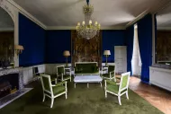 Jean Coural, alors administrateur du Mobilier national, demande au décorateur Serge Royaux de meubler cette nouvelle résidence privée. Scénographe d’expositions et décorateur de résidences privées luxueuses, il était l’homme de la situation. Pour les salons du rez-de-chaussée, le choix du mobilier se porte sur les collections Empire du Mobilier national. Certains meubles ont été adaptés aux usages modernes, comme des vases montés en lampes ou des bancs transformés en tables basses. Concernant les textiles, Serge Royaux va jouer sur les contrastes colorés et imposer le velours frappé. Pour le premier étage, espace véritablement privé, le style est plus discret : on opte pour un mobilier de style Louis XVI et des cotonnades imprimées rappelant la toile de Jouy.