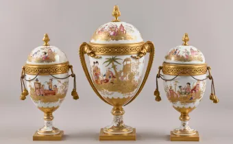 Le château de Versailles prête au J. Paul Getty Museum à Los Angeles une garniture de trois vases « œuf » ayant appartenu à la…