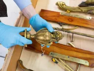 À l'occasion de cette opération de restauration, le secrétaire à cylindre a été confié au Centre de recherche et de restauration des musées de France (C2RMF) qui a effectué un nettoyage et un recollage des placages en bois satiné et des marqueteries soulevées. Une campagne globale de nettoyage des bronzes de ce bureau et des autres meubles présents dans la pièce, a également été menée.