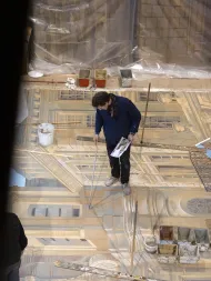 Deux expériences similaires ont été réalisées avec succès au cours des dernières années. La restitution d’une toile de fond pour le tableau de L'Intérieur rustique, et le complément du grand Palais de marbre réhaussé d’or de 1837 pour la scène de l’Opéra royal ont permis de poursuivre cette démarche de restitution. Le travail mené pour compléter les éléments manquants de la Place publique a été réalisé avec les mêmes techniques qu’au XIXe siècle. Aujourd’hui, la restitution d’un décor du XIXe siècle permettra de jouer de nouveau sur la scène du théâtre de la Reine.