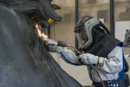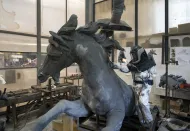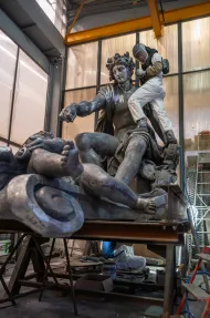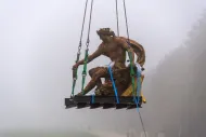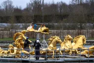 Lancement de la restauration : les treize sculptures en plomb sont déposées afin d'être acheminées à la Fonderie de Coubertin.
