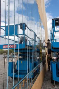 - Palissade de chantier : 7 m de haut et près de 64 m de long