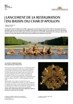 La restauration du bassin d'Apollon permettra la renaissance d'un des plus célèbres bassins des jardins de Versailles. À travers ce projet, le Groupe CMA CGM a souhaité mettre en valeur l'une des pièces majeures de ce lieu emblématique du patrimoine français. Cette grande opération patrimoniale redonnera toute sa splendeur à la Grande Perspective voulue par Louis XIV.