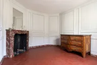 en «blanc de Roi » a également été dégagée et reprise en raccord selon les techniques traditionnelles. Enfin, un travail important a été effectué sur les pièces aux décors polychromes, rares témoins du goût du XVIIIe. Les corniches en stuc ont été restaurées et complétées et des travaux de recherche pour les teintes des motifs ont été conduits à partir des sondages menés sur les panneaux de lambris, avant intervention sur les décors.