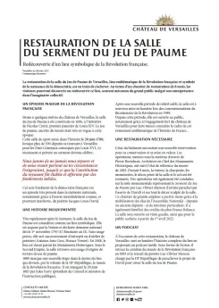 À l'occasion de cette restauration, le château de Versailles met en lumière l’histoire complexe du lieu en proposant un podcast inédit. Sous forme de fiction, il retrace la création du musée de la Révolution française en 1883 et le travail du peintre Luc-Olivier Merson chargé par la IIIe République de parachever le projet de David pour orner la salle du Jeu de Paume.