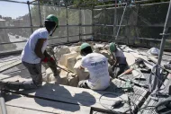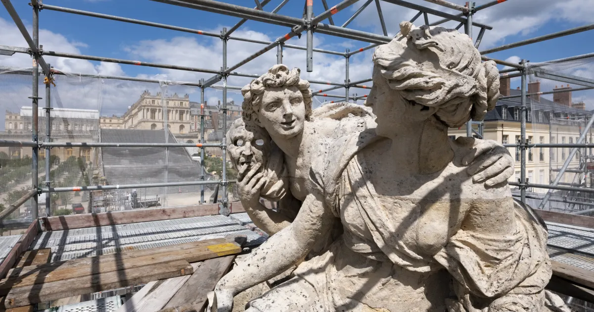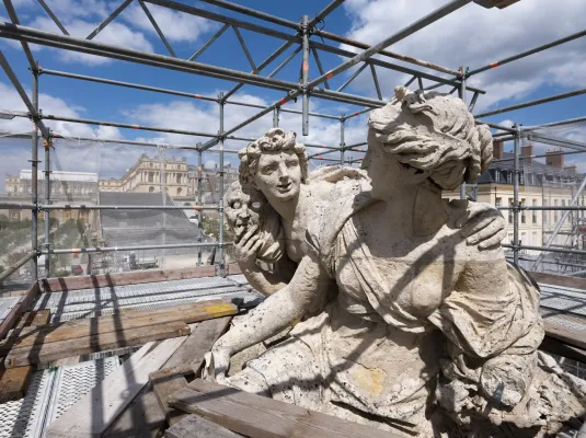 En parallèle, les sculptures monumentales, réalisées par Louis Le Conte et Pierre Legros vers 1687, devaient également être restaurées. Inspirées des Métamorphoses d’Ovide, elles célèbrent les amours des dieux à travers quatre couples mythologiques : Aurore et Céphale ; Vertumne et Pomone ; Flore et Zéphyr et Vénus et Adonis. Chacune d'entre elles pesant environ 20 tonnes, il était nécessaire de trouver un atelier capable d'accueillir ces monuments de pierre.