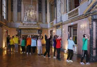 Guillaume Jablonka, chorégraphe de danse baroque au sein de sa compagnie Divertimenty, a guidé sept personnes de l’ESAT Les Néfliers, de l’association Avenir APEI. Leur chorégraphie est inspirée par l’escrime, la danse et l’équitation. Le groupe a pu nourrir son imaginaire en suivant une visite guidée sur le thème « Des sports et des jeux à Versailles ».