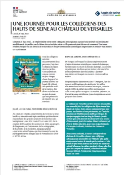 Au cœur des Grands Appartements du roi et de la reine, les élèves rencontreront sept comédiens qui dévoileront chacun l'une des grandes avancées de la science sous les règnes de Louis XIV, Louis XV et Louis XVI. De la création de l'Académie des sciences en 1666, aux progrès de l'ingénierie, de l'astronomie, de la cartographie, de la chimie, de la médecine, jusqu'aux grands « spectacles scientifiques » qui divertissaient la cour, les participants seront plongés dans le Versailles des XVIIe et XVIIIe siècles.