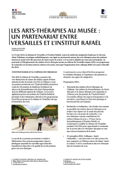 Dès 2020, le château de Versailles a permis à des arts-thérapeutes de mener des ateliers auprès de leurs patients au sein du musée. En 2022, le Château a noué un premier partenariat avec l’Institut Rafaël, permettant à plus de 100 patients de bénéficier d'ateliers et de séances de dramathérapie et de chant thérapeutique dans les différents espaces du Château. Cet accord a également permis aux patients de l'Institut Rafaël de participer à des événements culturels et des programmes d'activités proposés par le château de Versailles, tels que le Pentathlon des Arts.