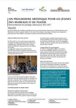 De 2025 à 2027, ce dispositif aura pour objectif de rassembler les habitants des quartiers prioritaires de la politique de la ville (QPV) autour d’une création artistique collaborative inspirée des décors du château de Versailles.