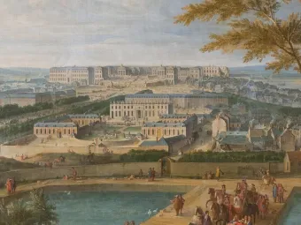 Vue perspective de la ville et du château de Versailles depuis la butte Montbauron ; visite du roi du 14 novembre 1685,