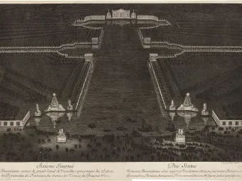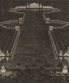 A la suite de la conquête de la Franche-Comté en 1674, Louis XIV organise de grandes fêtes à Versailles. Durant ces festivités, les jardins sont à l’honneur, comme en témoigne cet extrait qui relate la mise en lumière du parc du Château, jusqu’au Grand Canal. Les fontaines permettent un jeu de reflet qui magnifie encore l’ensemble.