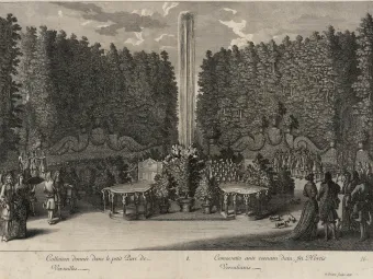Dans cet extrait de la Relation de la fête de Versailles du 18 juillet 1668, André Félibien décrit l’organisation d’un Grand Divertissement royal par Louis XIV. Le roi désire célébrer la paix d’Aix-la-Chapelle en commandant une comédie à Molière et Lully, une collation, un souper et un feu d’artifice dans les jardins de Versailles.