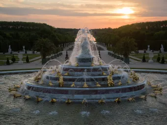 Si l’on peut se promener au bord du bassin du grand canal et admirer les jeux d’eau des fontaines, on ne peut que deviner les réservoirs et réseaux hydrauliques courant sous nos pieds. Pourtant, Louis XIII construisit son pavillon de chasse au milieu d’un terrain marécageux. Manquant d’eau pour alimenter le domaine de Versailles, ingénieurs, astronomes, physiciens, mathématiciens et bien sûr fontainiers relèvent depuis près de quatre siècle le défi de faire jaillir l’eau à Versailles !