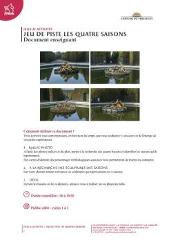 Votre mission ? Partir à la recherche des bassins et des sculptures qui représentent les quatre saisons dans les jardins à l’aide de photos indices et de défis à réaliser.